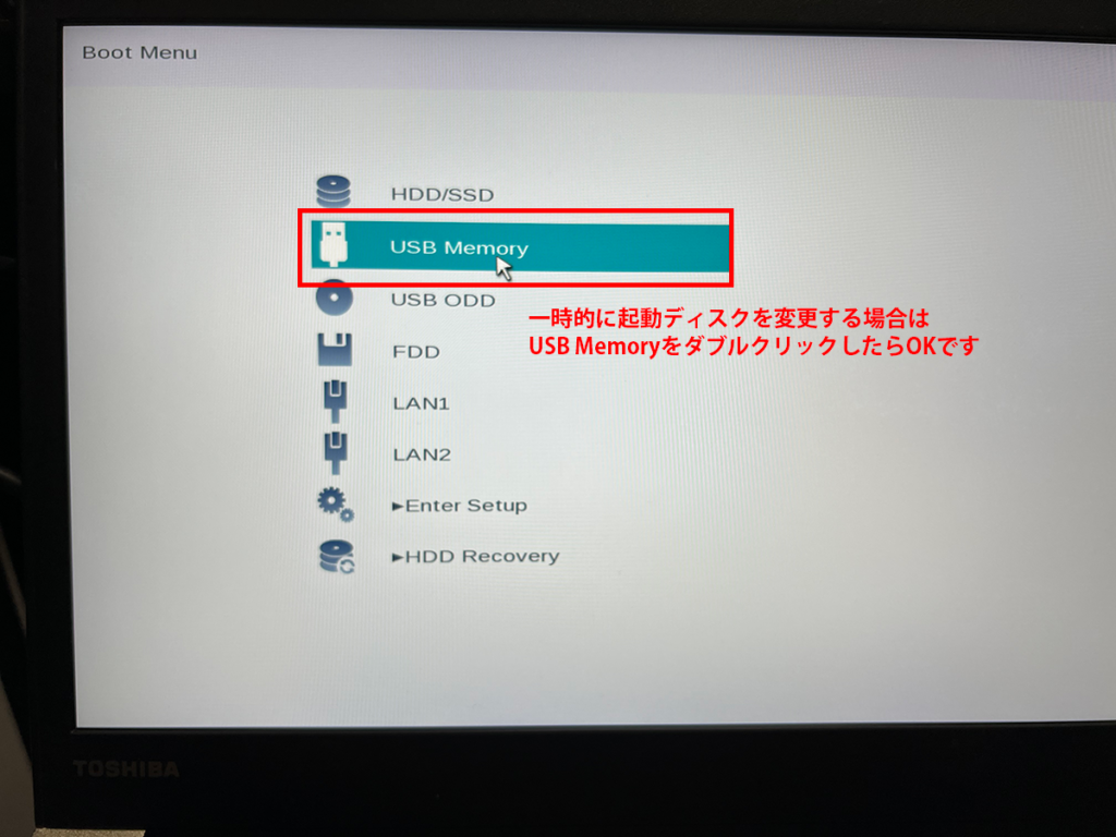 一時的にWindows10、11の起動ディスクをUSBメモリーに変更する方法