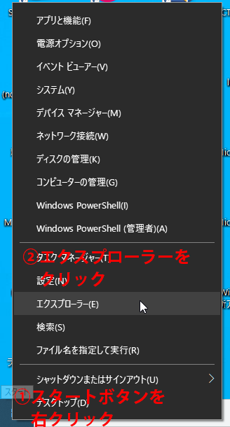 - スタートボタンを右クリックします。