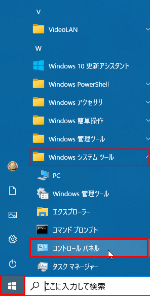 - 表示された項目から、「Windowsシステムツール」を選択します。